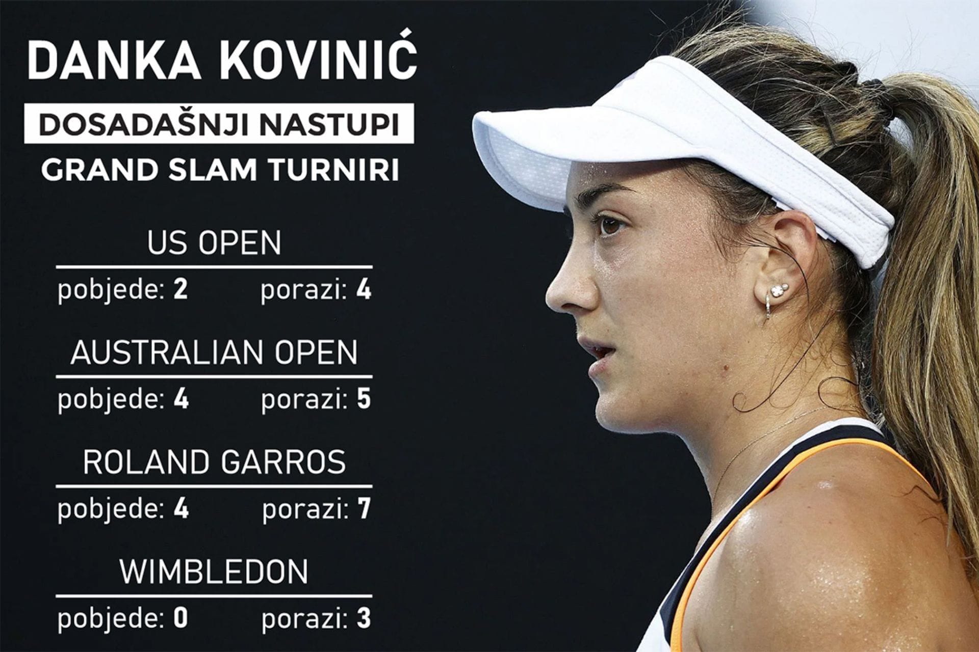 Ne računajući kvalifikacije, biće ovo peti nastup Danke Kovinić na US Openu, a ukupno 20. na gren-slem turnirima.