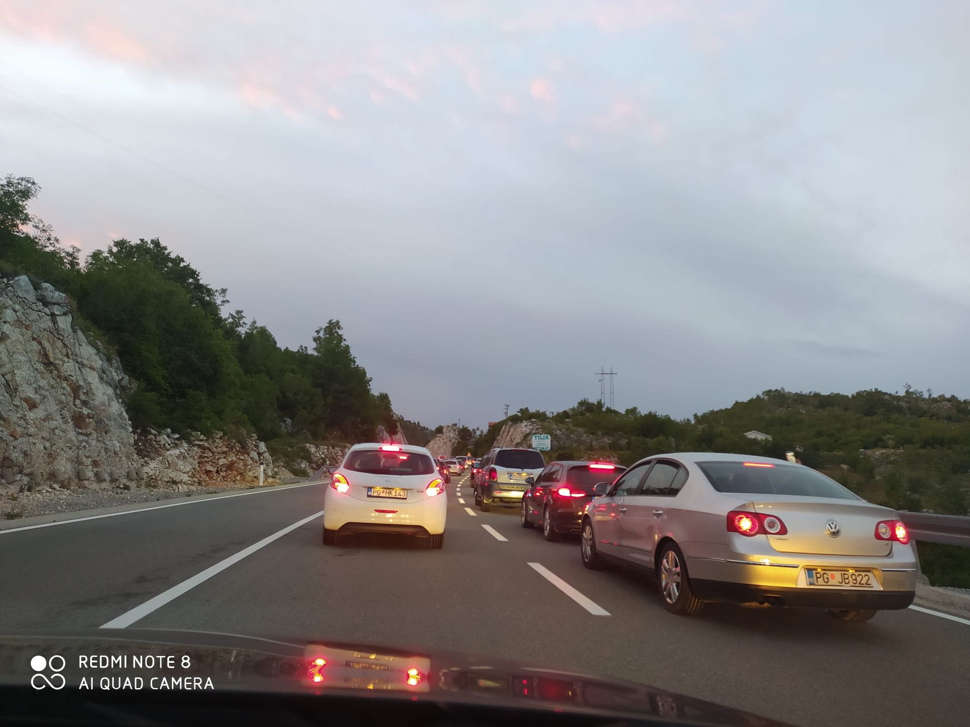 Na putu Cetinje – Budva trenutno su velike gužve, s kilometarskim kolonama vozila, koja se mahom vraćaju s primorja u Podgoricu.