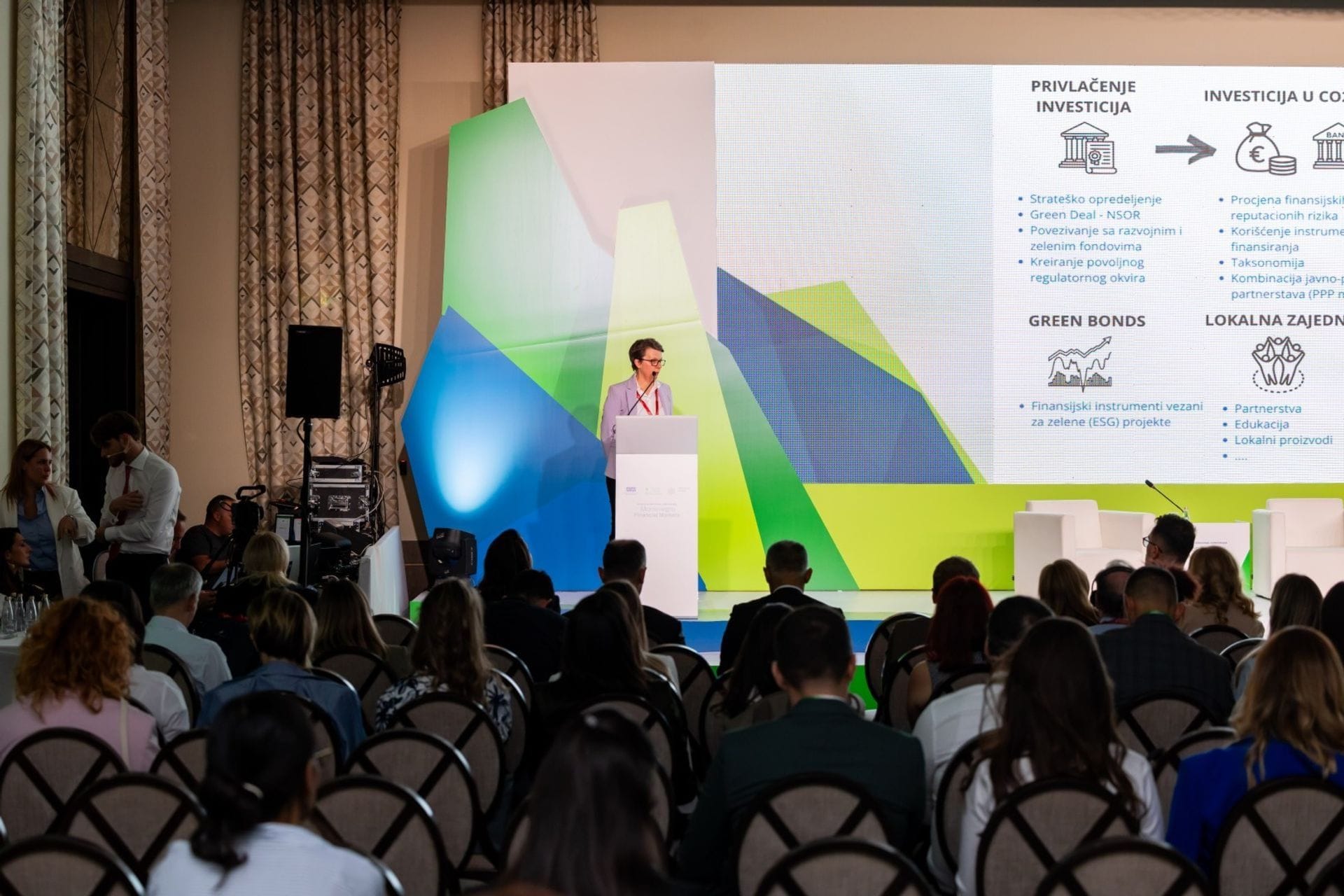 Kao ilustraciju praktične primjene, Gligorić je predstavila studiju slučaja o izgradnji hotela sa nultom emisijom ugljen-dioksida u Crnoj Gori: „Najprije je potrebno stvoriti ambijent za privlačenje takvih investicija. Postoji strateško opredjeljenje kroz Evropski zeleni dogovor, nacionalnu strategiju održivog razvoja, dakle okvir je uspostavljen. Treba da se promovišemo kao destinacija koja želi zelene i ESG finansije, te da razvijamo povoljan regulatorni okvir kako bismo bili prepoznati kao takva destinacija.“