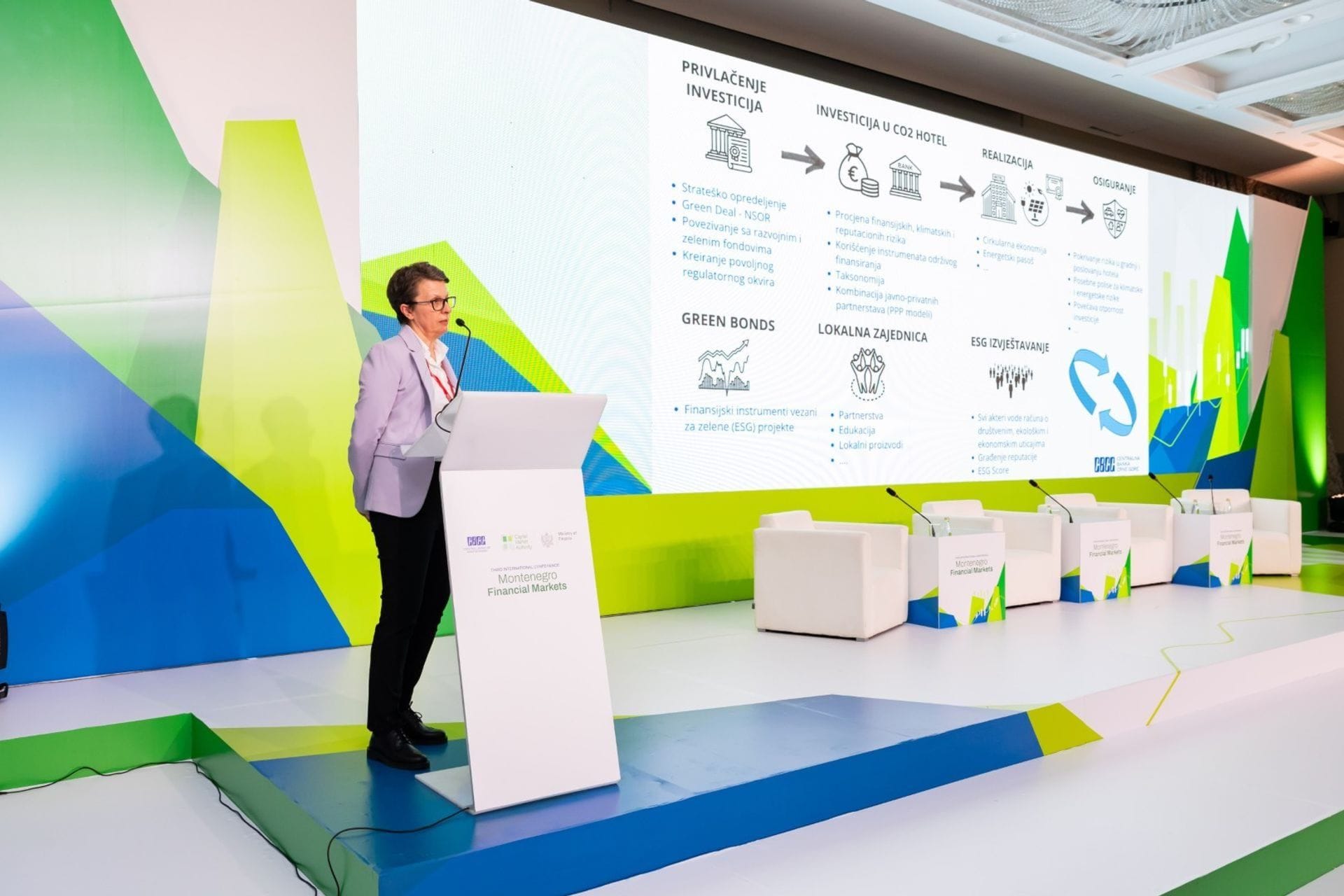 Na trećem izdanju međunarodne konferencije „Montenegro Financial Markets“, Biljana Gligorić, savjetnica guvernerke Centralne banke Crne Gore (CBCG) za ESG i inovacije, održala je predavanje pod nazivom „Mapa puta finansijskog sektora ka održivim finansijama“, naglašavajući da klimatske promjene nijesu prolazna tema, već pitanje koje duboko zadire u ekonomiju i finansijski sistem.