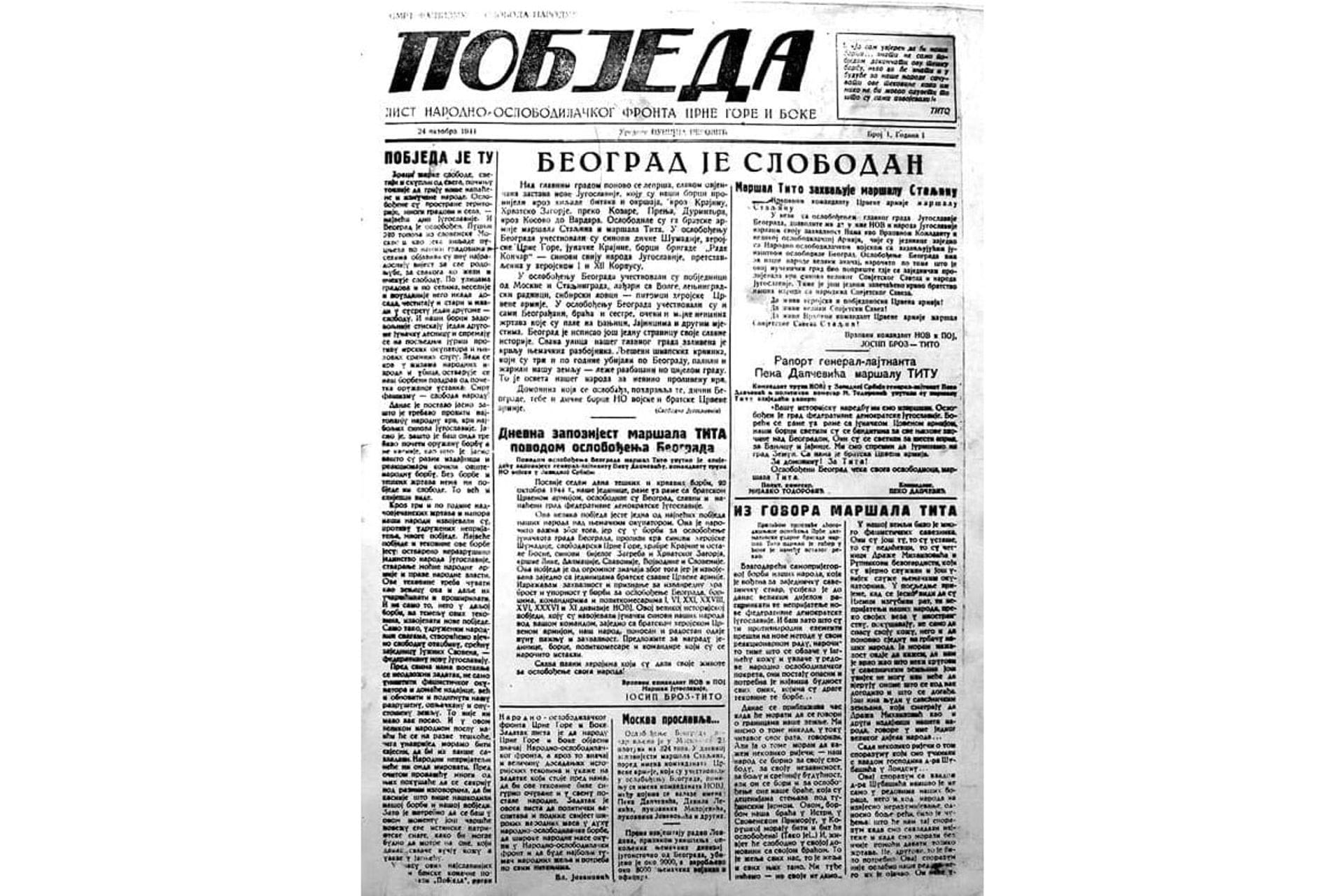 Prvi broj „Pobjede“ / 24. oktobar 1944. u Nikšiću /