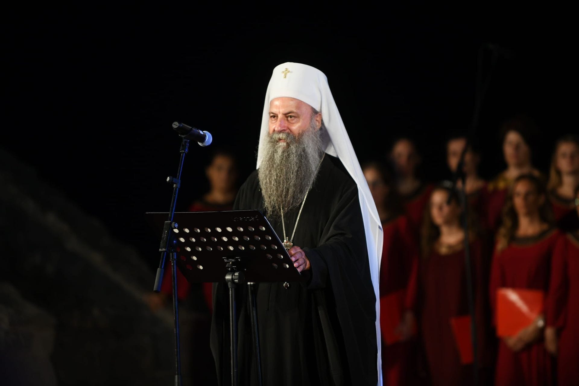 Nakon primanja Svetostefanske povelje, urađene po zamisli arhitekte Srđana Marlovića, kao i umjetničke slike koju je specijalno za ovaj povod oslikao Nikša Kosić, publici koja je ispunila gledalište obratio se patrijarh srpski Porfirije.