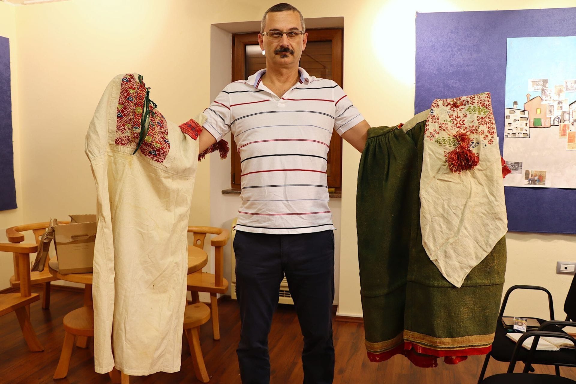 Staklena vitrina za bogato izvezenu bluzu i maramu te zelenu haljinu od grubog i teškog sukna već je spremna!